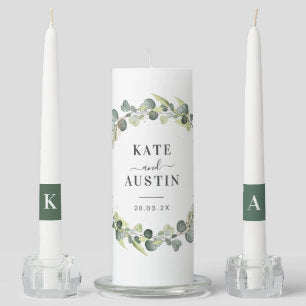eucalyptus greenery foliage wedding unity candle set