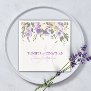 Watercolor Floral Lavender Purple Wreath Wedding Napkins