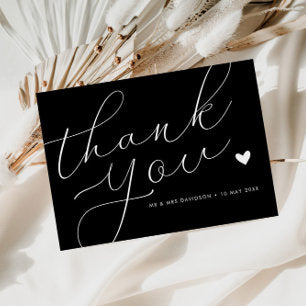 elegant white script black wedding thank you card