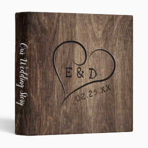 Rustic Monogram Wood Heart Wedding Album 3 Ring Binder