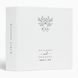 Minimalist Botanical Rustic Monogram Wedding Album 3 Ring Binder