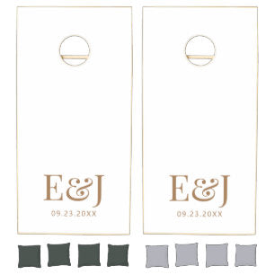 Simple Modern Elegance Gold Couple Monogram Cornhole Set