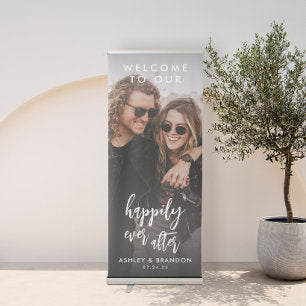 Welcome To Our Happily Ever After Wedding Photo Retractable Banner