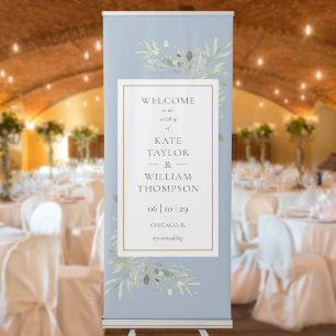 Elegant Dusty Blue Greenery Wedding Welcome Retractable Banner