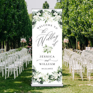 Elegant White Orchids Bohemian Wedding Welcome Ret Retractable Banner