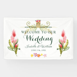 Elegant Hawaiian Tiki Tropical Summer Wedding Banner