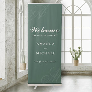 Emerald Green Elegant Monogram Wedding Retractable Banner