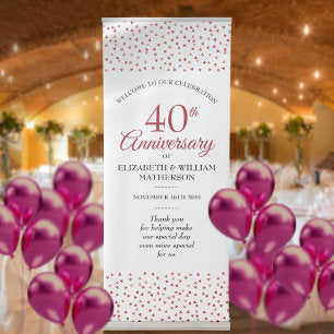 40th Wedding Anniversary Ruby Love Hearts Welcome Retractable Banner