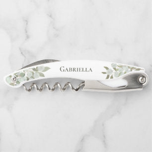 Rustic Watercolor Eucalyptus Bridesmaid Name Waiter's Corkscrew