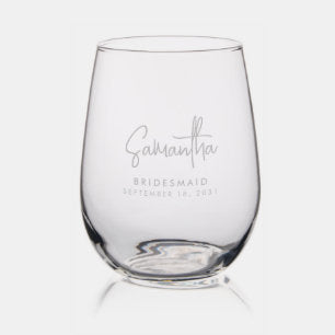 Modern Personalized Bridesmaid Proposal Stemless Wine Glass