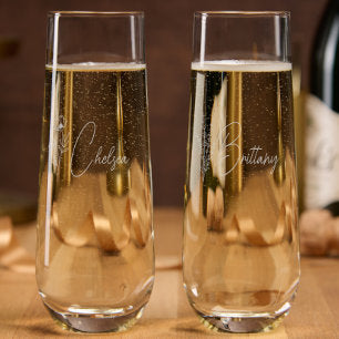 Simple Modern Personalized Bridesmaid Floral Stemless Champagne Flute