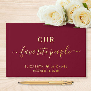 Our Favorite People Photo Burgundy Wedding Foil Guest Book
