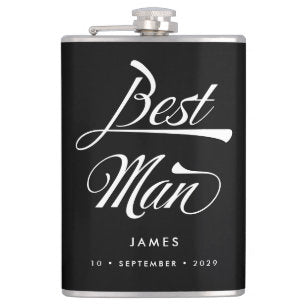 Stylish Black Retro Typography Best Man Groomsmen Flask