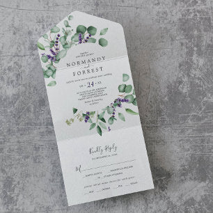 Rustic Lavender and Eucalyptus Wedding All In One Invitation