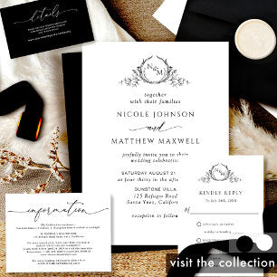 Black and White Elegant Monogram Wedding Invitation