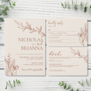 Modern Boho Floral Terracotta Burnt Orange Wedding Invitation