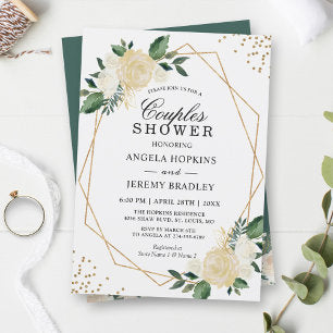 Wedding Couples Shower Modern Gold Greenery Floral Invitation