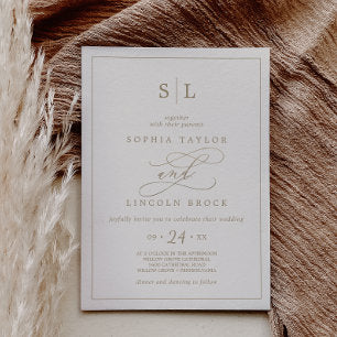 Romantic Gold Calligraphy Ivory Monogram Wedding Invitation