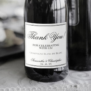 Elegant Minimalist Wedding Thank You Black & White Sparkling Wine Label