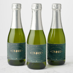 Faux Gold & Emerald Green Tarot Celestial Wedding Sparkling Wine Label