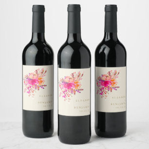 Elegant Chic Pink Watercolor Floral Wedding Custom Wine Label