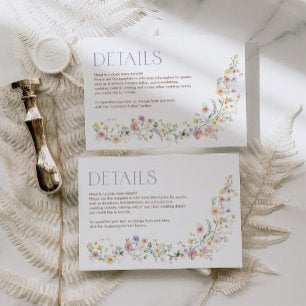 Pastel Wildflower Garden Floral Wedding Details Enclosure Card